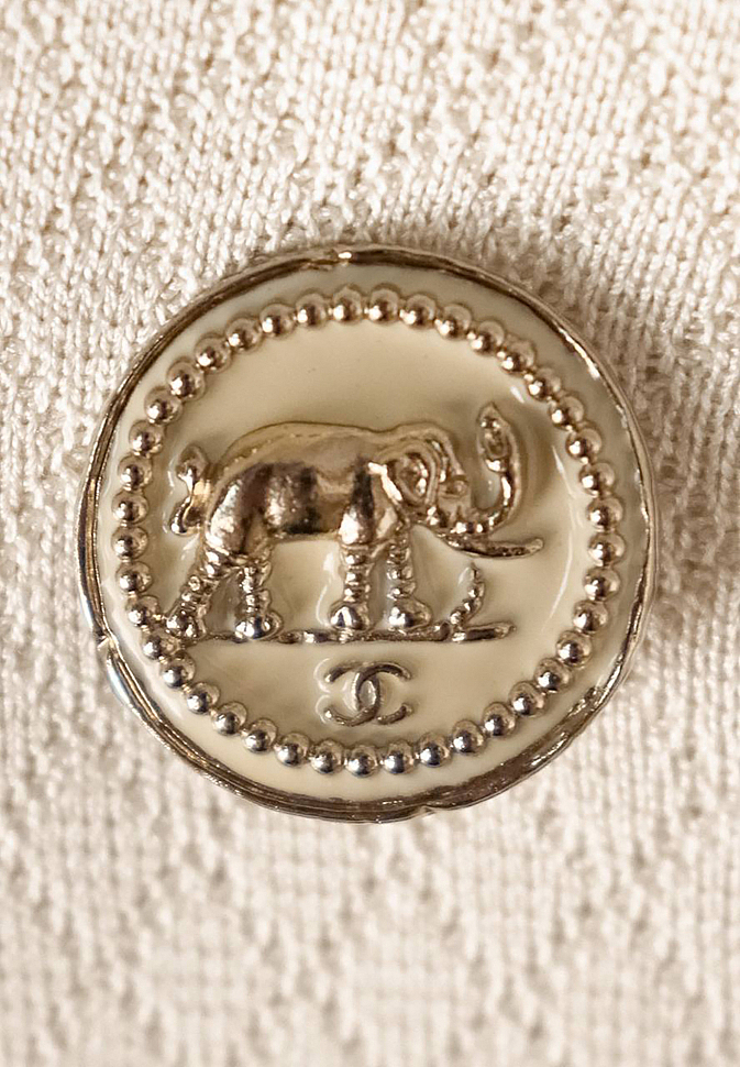 Все было пропитано атмосферой Индии и стилизовано под большой праздник в интерьерах махараджей. Знаменитый розовый Раджастан, снежно-белый, золотой и серебряный, нити жемчуга, элементы традиционной одежды сари и вышивка. Жакет Chanel из коллекции Paris Bombay декорирован пуговицами с изображением символа Индии — слона.